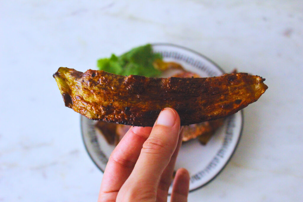 Stop throwing your banana peels away! This smokey, salty, slightly sweet marinade gives the peels their delicious flavors, and it's pretty simple to make too!