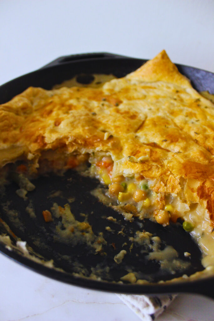 - Use a 10 inch skillet for this recipe. We have a 12 inch one and it didn't fill enough. Alternatively, you can always make the filling in whatever skillet you have and then transfer it to an oven safe dish with the puff pastry dough on top.