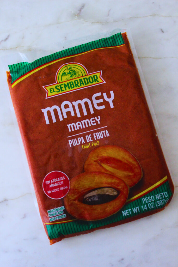 If you can find a fresh ripe mamey then you should definitely make it with that. However, if you are like us and don't have easy access to the actual fruit, you can buy the frozen fruit pulp at a store. Depending on where you are, you might have it in your typical grocery store, otherwise you might need to look for a more "specialty" store. Most Hispanic food grocery stores should have it as a frozen pulp.