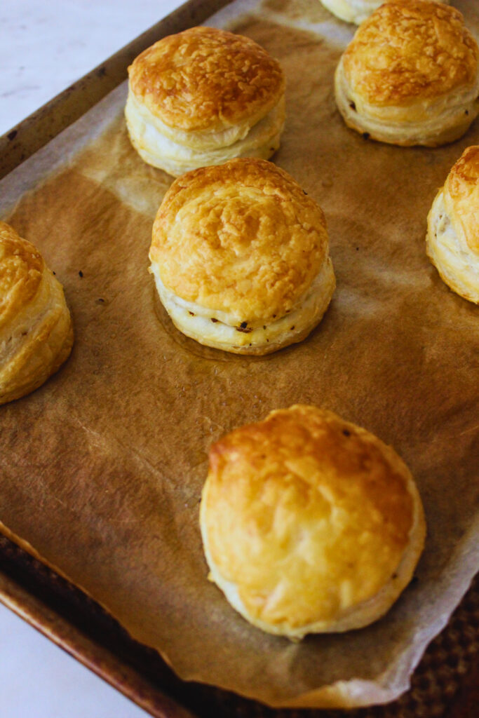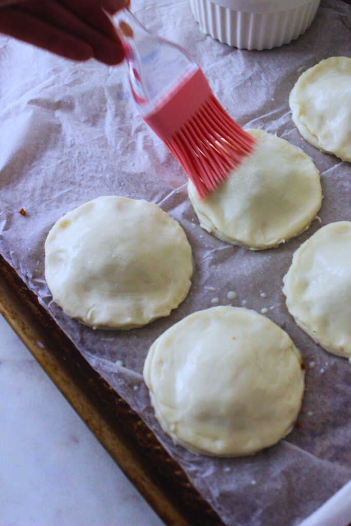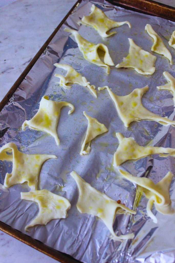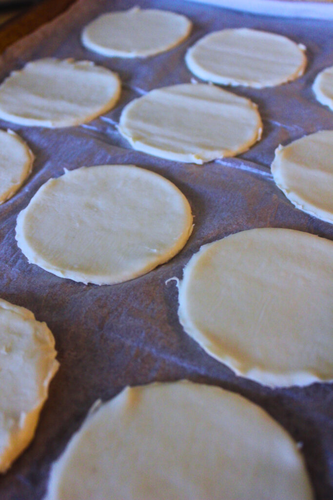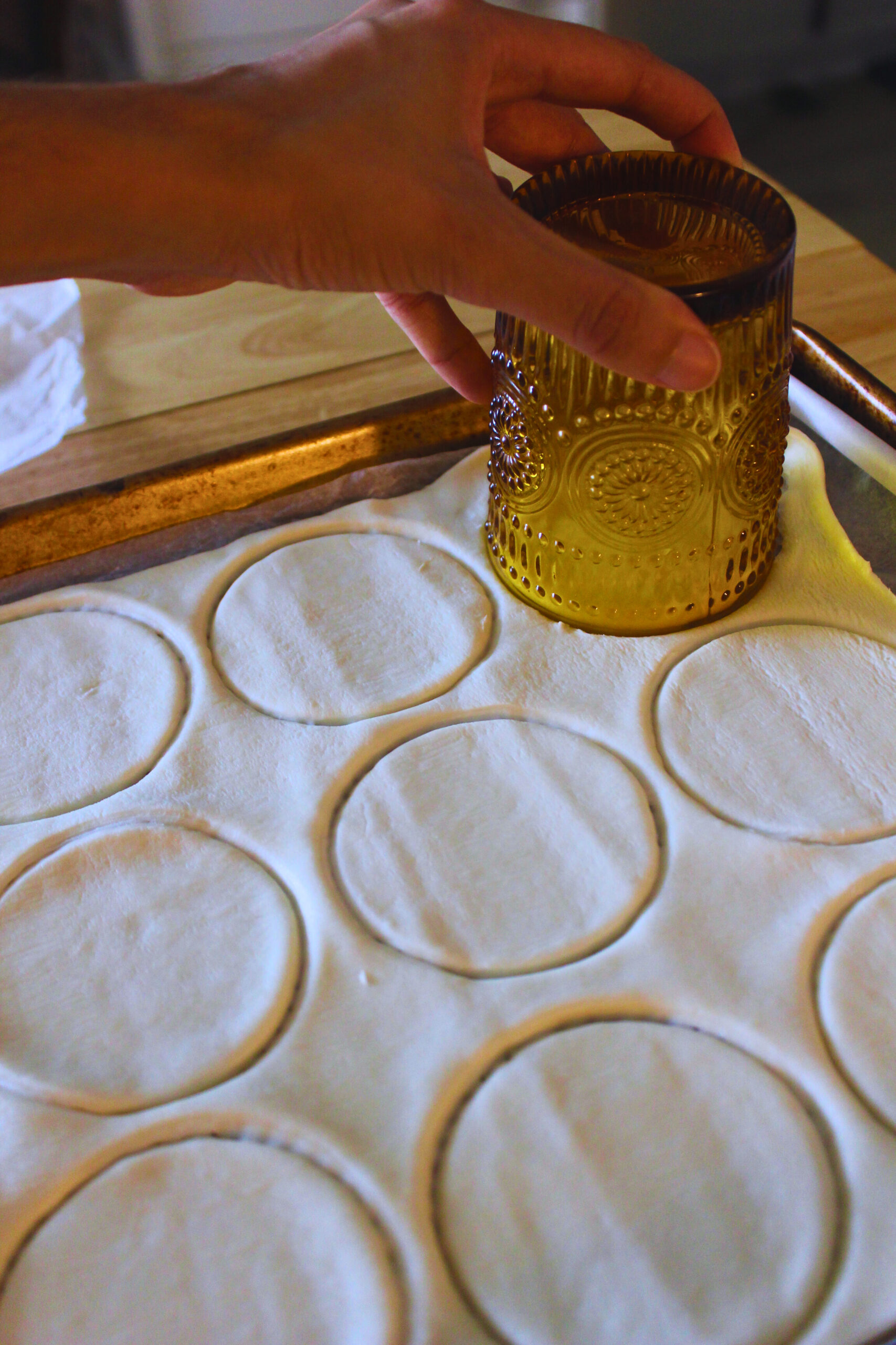 • Lay out the dough on a sheet pan and use a cookie cutter or cup to cut out circles (if you want to use that shape).