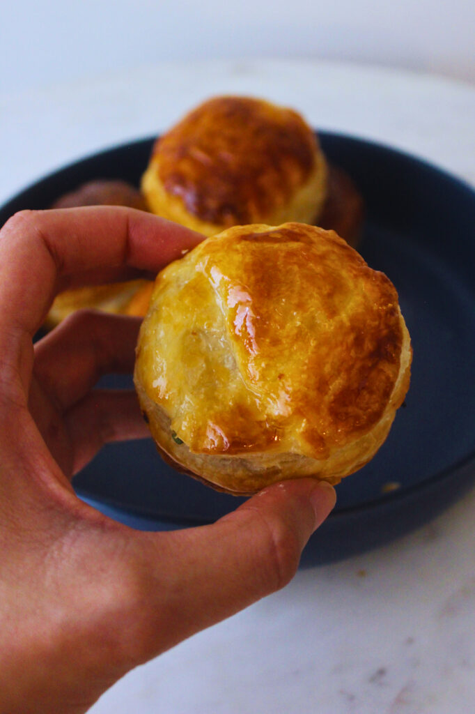 Although we no longer live in Miami, we are just 230 miles away and often go back for family and friends, it will always be our home. This recipe is one we use to scratch that itch for a delicious Cuban pastelito. This one in particular is savory and sweet, filled with ground beef (we will be using a vegan substitute) and topped with a coating of simple syrup. These pastries are called cangrejitos. You can find our recipe for guava and cheese filled ones here!