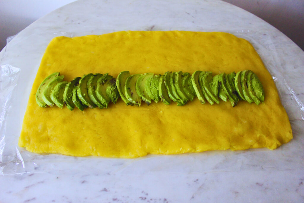 - Prepare the Filling: Choose your desired filling. We are using sliced avocados and a garbanzo and heart of palm mash.