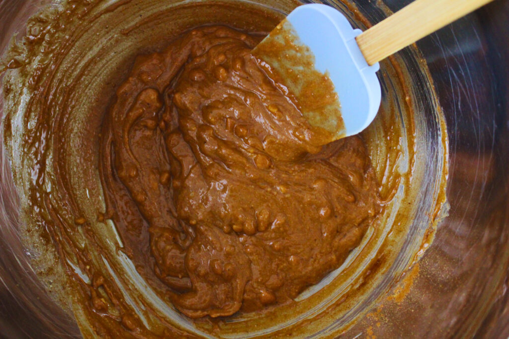 • In a large bowl combine the nut butter, maple syrup, coconut oil, cinnamon, ginger, nutmeg, vanilla extract, salt.