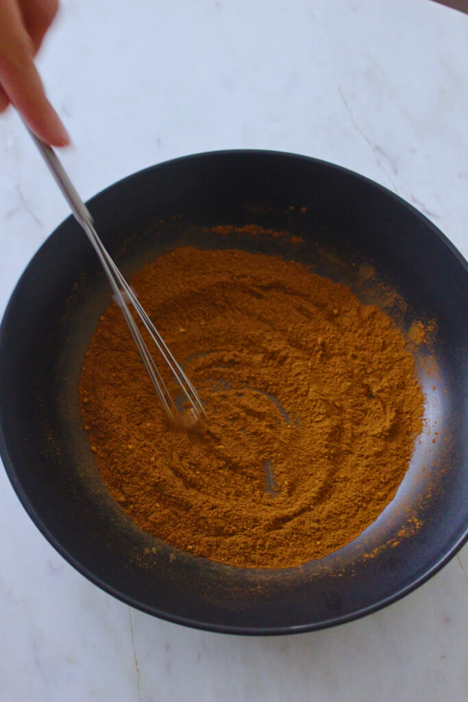 Once you have all your spices, toss them into a bowl and mix with a whisk or fork. Store in an airtight container along with your other spices.