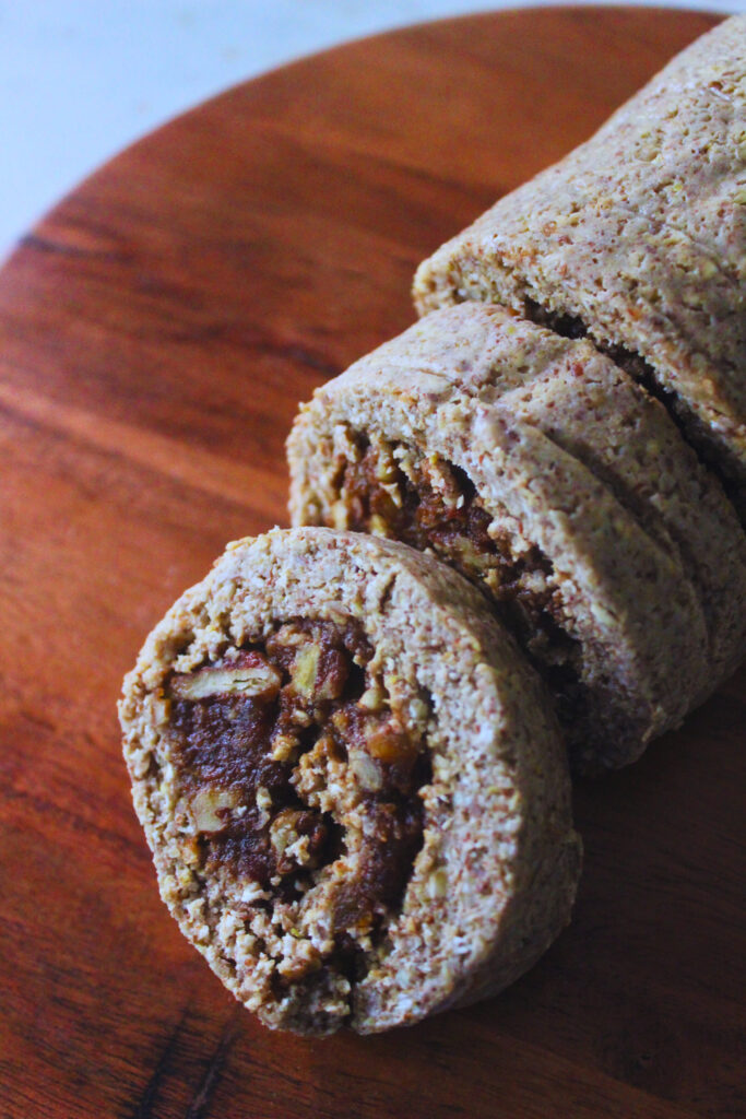 - Prepare the Filling: In a food processor, blend the pitted dates, pecans, water, cinnamon, vanilla extract, and salt. It's ok to have pieces of pecans for texture.