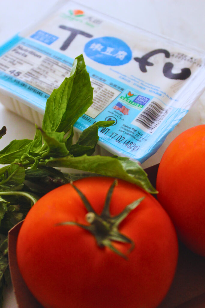 The refreshing light taste of a caprese salad is something I have truly missed. Fresh aromatic basil with the sweetness of juicy tomatoes and a soft light cheese- mmmmmm, so good and so perfect for summer. Here's a vegan version where we simply use silken tofu as a mozzarella replacement. It honestly works so well, plus, compared to mozzarella it has lower saturated fat and no cholesterol!