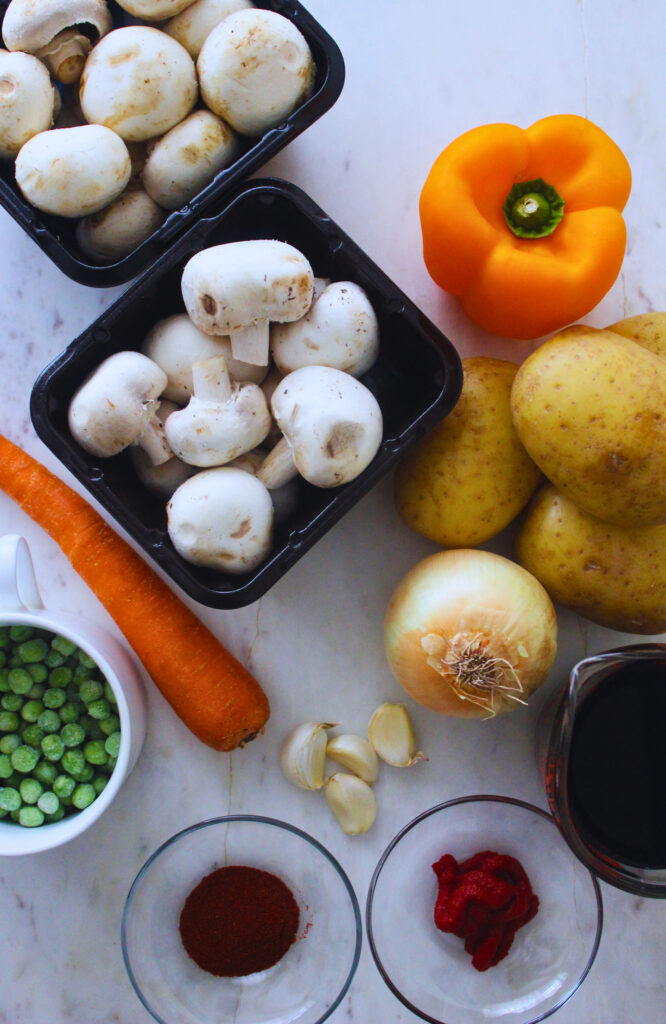 This is a common meal to have in a Cuban household, and despite being a stew like dish, it is not served only during chilly seasons. In fact, you can walk into a household while it feels over a 100 degrees outside and be welcomed by the delicious aromas that fill a home when you make hongos con papa. The earthy mushrooms, soft potatoes, with the sweet peas, all covered in a delicious savory sauce are so satisfying over a bed of fluffy white rice.